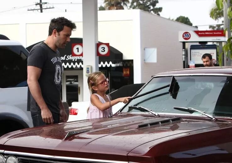 本阿弗莱克可以使用一些帮助。似乎他有一段时间没有在加油站清理挡风玻璃。这就是他的女儿Violet介入的地方。她是一个天生的刮刀,向她的父亲展示如何正确清洁他的雪佛兰Chevelle SS。这是在洛杉矶布伦特伍德的一个76加油站进行的。当他看着女儿毫不费力地清理挡风玻璃时,Ben看上去很发呆。他似乎很感激她的帮助。