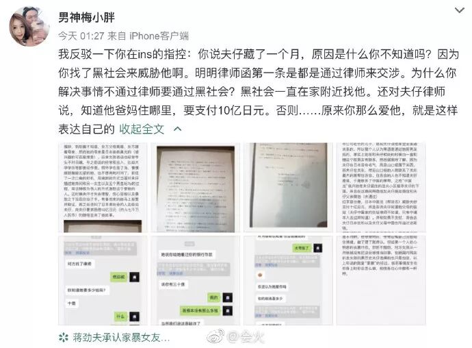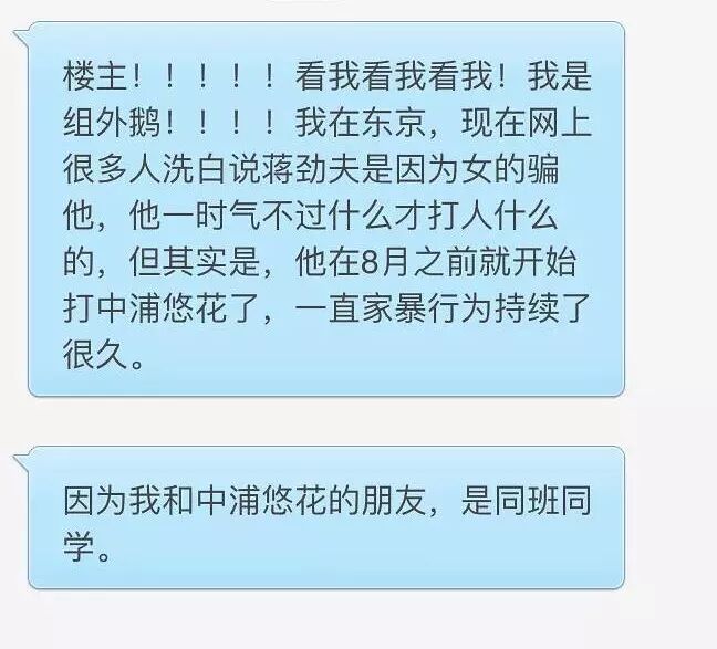 还有自称中浦悠花朋友的网友爆料中浦悠花从8月开始就被打了,蒋劲夫的家暴行为持续了很久……