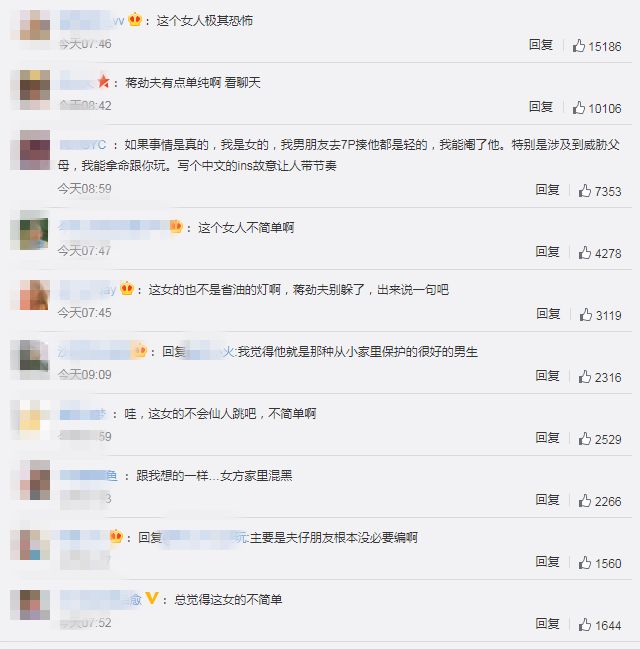 蒋劲夫这波朋友的“仗义执言”,让形势很快发生了转变,一个单纯善良忠厚老实的男孩,在海外被一个有心机的女人骗财骗色,不少人开始觉得“打得好,该打,换我我也打!”