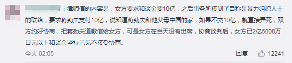 还曝光了一份律师信,女孩要求十亿赔偿,并且律师信里有暴力团伙名称出现。