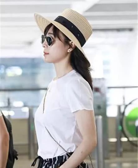 2018年7月21日,张静初街拍,白T恤搭配黑白条纹阔腿裤Dior圆钉包文艺范儿。