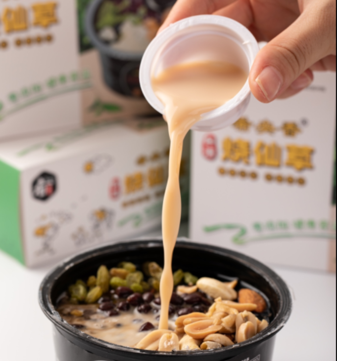 加入食用淀粉凝固而成,仙草冻Q弹嫩滑