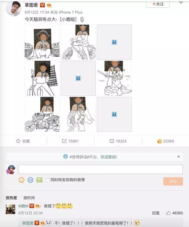 让人意外的事,鹿晗本尊的微博居然秒回:我错了!