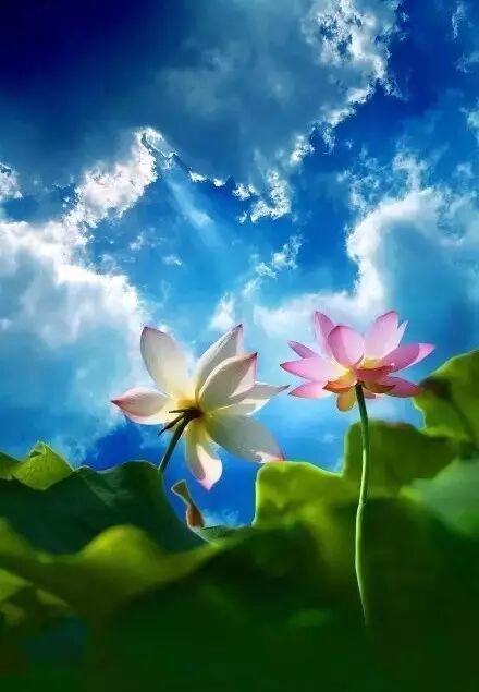 花开并蒂,清香满塘,片舟荡漾,令人爽身清心;