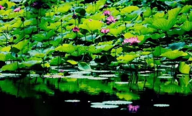 意在盛夏酷暑,荷塘碧叶翠梗,
