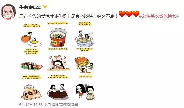 前几天,一个名为#宋太太吃货体情书#的话题蹿上新浪微博话题榜,一度占据了微博话题总榜第三名、明星榜第一位,阅读量高达2486万。随之宋仲基吃货体情书网上走红,网友充分发挥想象力,幻想自己和宋仲基的“食物情缘”。