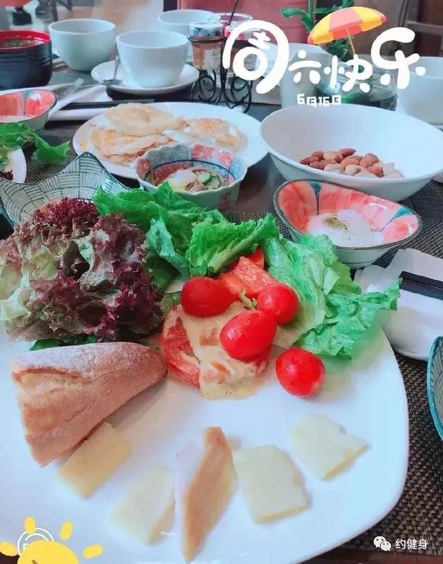 就连出差在酒店的时候,也不忘记在酒店的早餐中挑选身生菜、鸡蛋、果仁等。