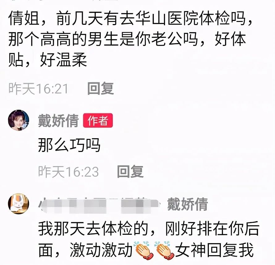 戴娇倩本人也回复了这条评论,说这么巧,正面承认了那天她确实和老公去医院了。