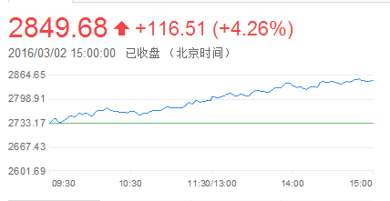 网友们激情讨论,股民们也不闲着,A股今天是打了兴奋剂。沪指暴涨逾百点,涨超4%。深成指涨近4.8%。创业板放量拉升,涨逾4%,收复2000点高地。