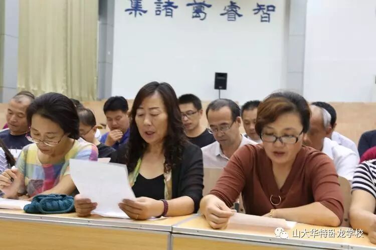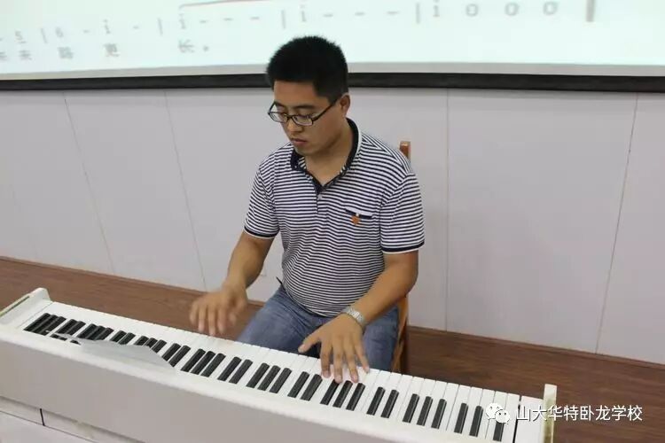 高校长首先就校歌进行了解读,对歌词所包含的几个元素及蕴含的深刻意义做了简明扼要的分析与阐释。俗话说,一千个人眼里就有一千个哈姆雷特,这需要自己在演唱的过程中反复揣摩,仔细回味。领唱老师陈圆芳字正腔圆,如百灵含着清亮的晨露,宛转动听。伴奏老师袁伟懿全神贯注,美妙的旋律在指间缓缓流淌,如大珠小珠撒落玉盘。台下的我们一点也不敢掉以轻心,校领导更是一扫往日的严肃与古板,如小学生一样逐字逐句地学唱,纠正着不着调的音准和不太流畅的音色,那么专注与投入。唱到兴致处,神采飞扬,微笑陶醉的样子俨然就是一名专业的歌手。就这样一遍又一遍,优美抒情的旋律在小报告厅内宛转回旋,余音绕梁。
