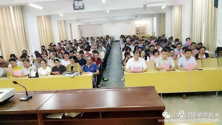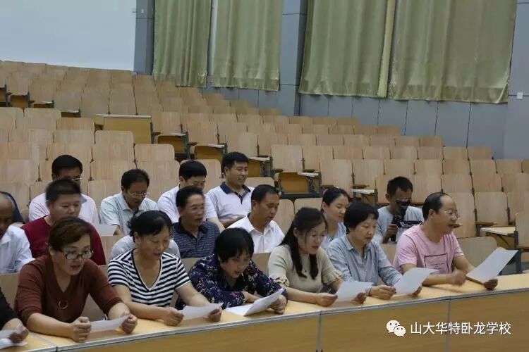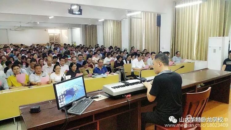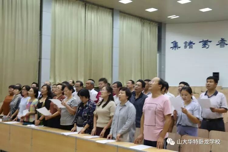 放飞梦想,大声歌唱,近乎知天命的我们也禁不住伸出手臂想要触摸蓝天。近日,《放飞梦想》这首校歌在卧龙学校响遏行云。走着坐着,即使在梦里都还在歌唱。耳濡目染,每个卧龙人都能张口就来上几句。未经专业训练的我们既不识谱更不能辩音,再加上五音不全,很难抓住歌风与音调,即便如此,只要心里喜欢,还是乐意不停地吟唱。各分校在音乐教师的专业指导下,争先恐后地学唱起来。待各分校广泛传唱进行到如火如荼之际,9月18日晚上7:00在高印文副校长的组织下,总部全体成员齐集于学校小报告厅,放飞梦想,大声歌唱。