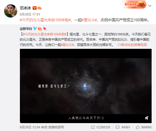 正值一百周年,各大明星也争相发起了庆祝贺词。