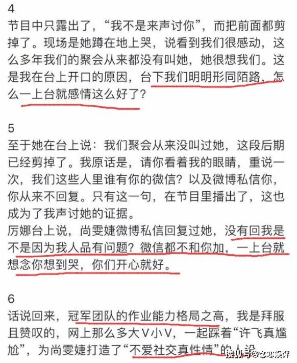 更让人觉得不可思议的是,节目从录制完到播出,许飞心中是一直耿耿于怀的,一方面是对于这个节目的看法,另一方面是在强调她跟尚雯婕不是一路人,更不是所谓的好朋友。