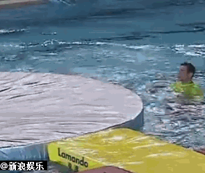 助理出于对跳水的好奇,也在3米板试跳,没想到跳下去的时候发生了意外。