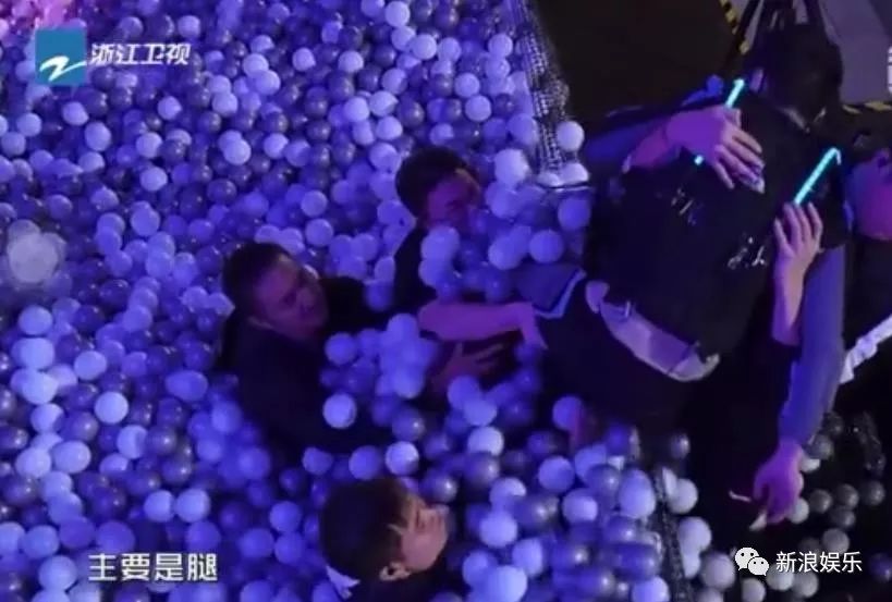 最后邹市明是靠着几个工作人员一起架着被抬出了海洋球池,出来时他已经腿抽筋。