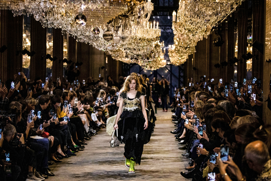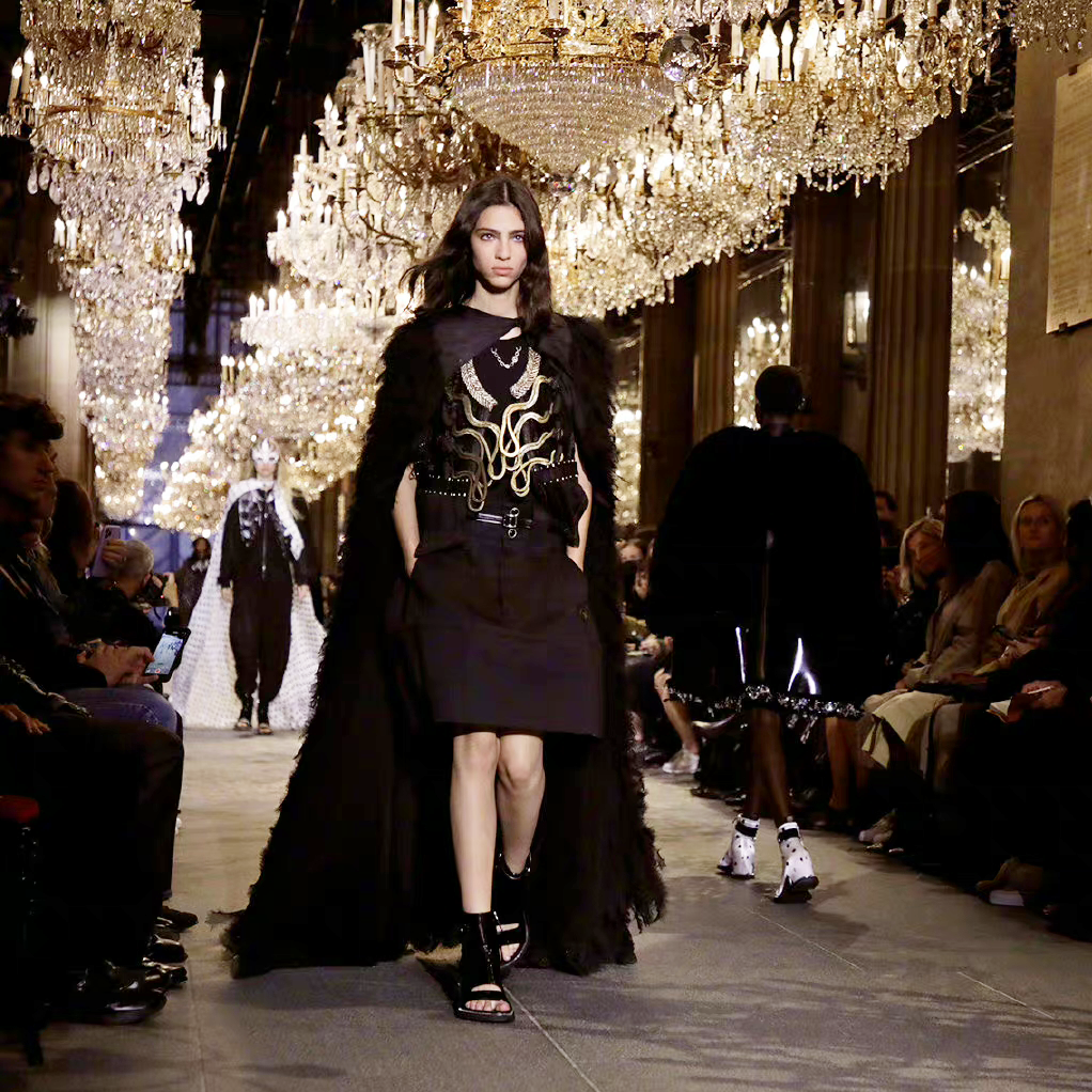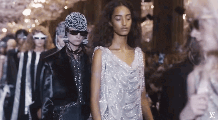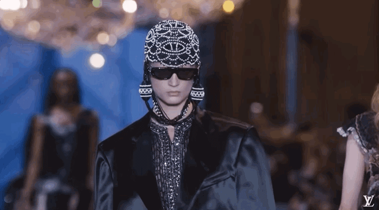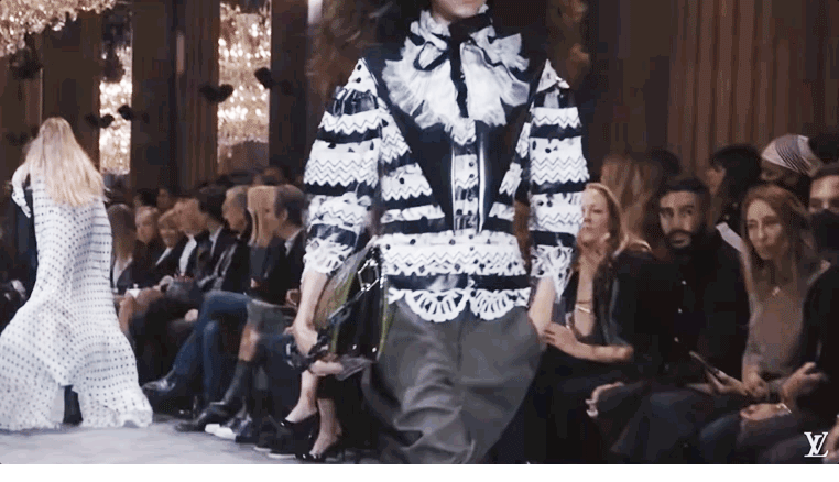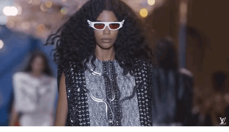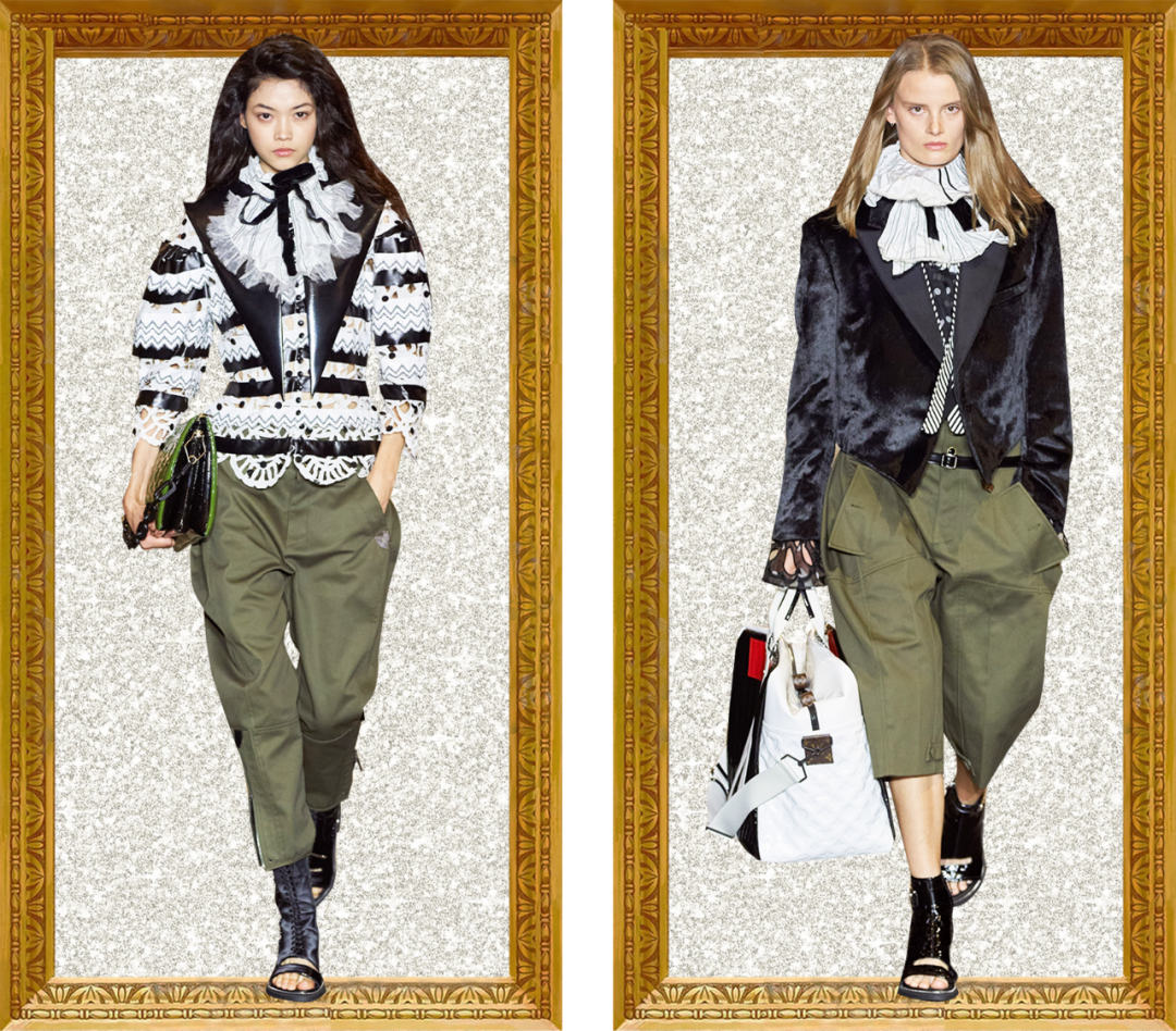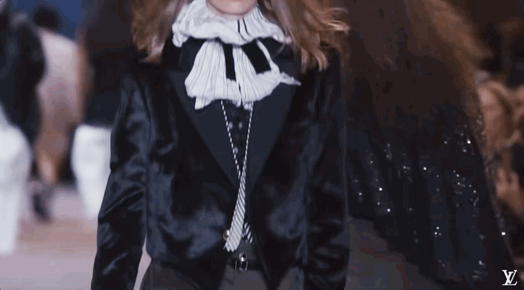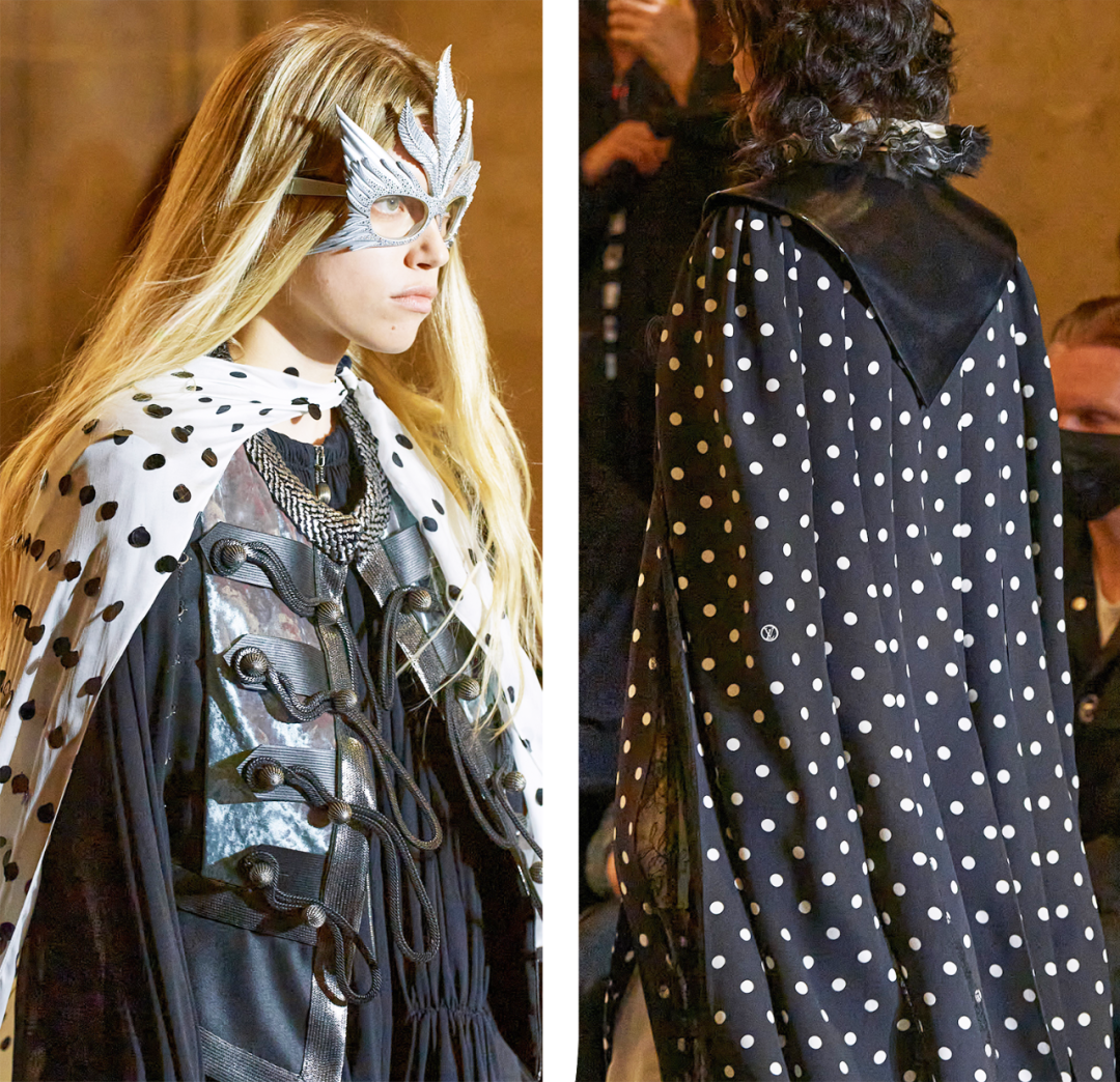 我感觉Nicolas本人特别看重这活。他直接用《迷离劫》中的吸血鬼形象作为LV的2022年春夏女装系列的灵感,所以看这个秀,多少能看到点剧里女主角的风格了哦?