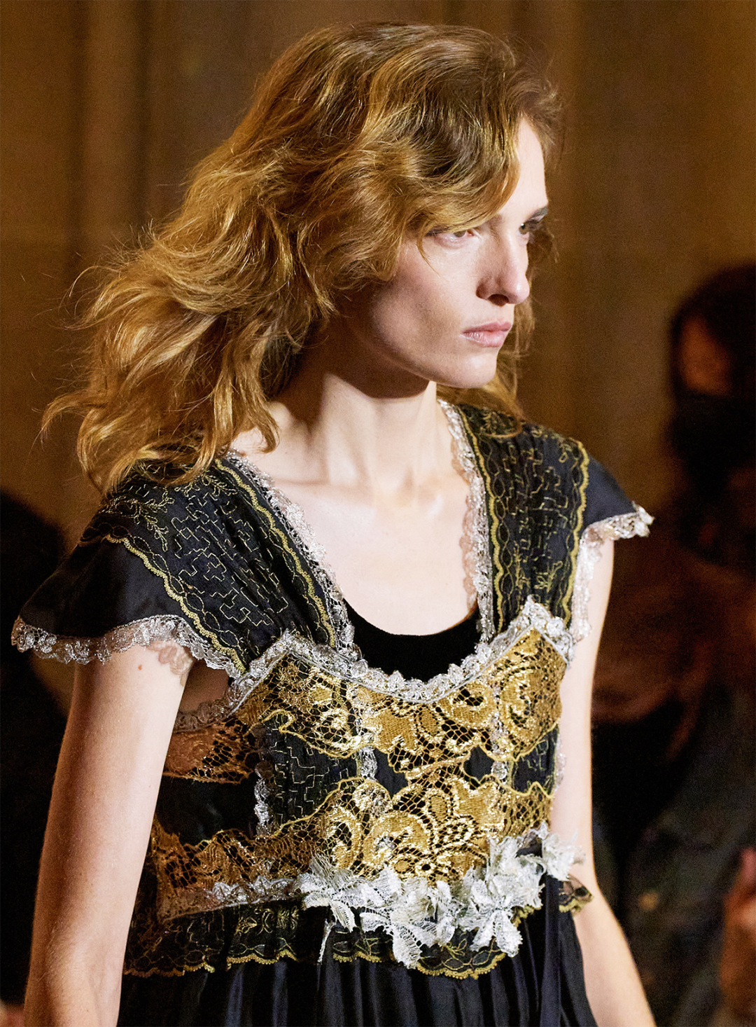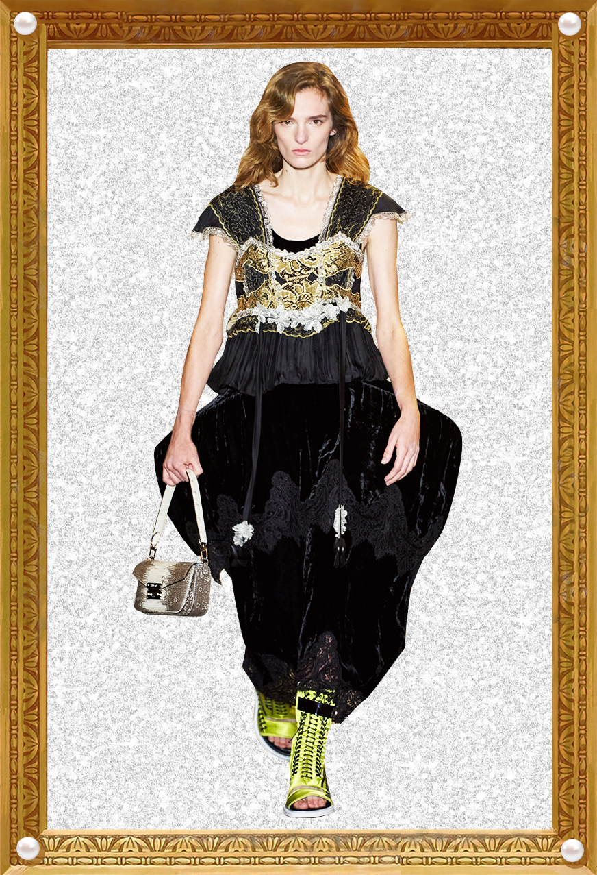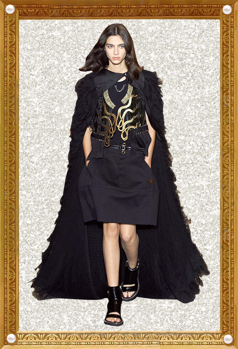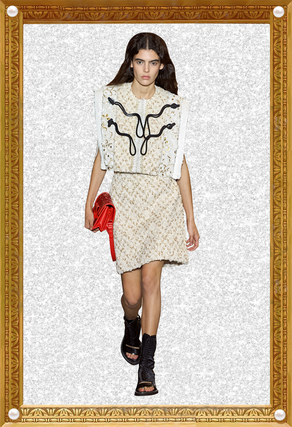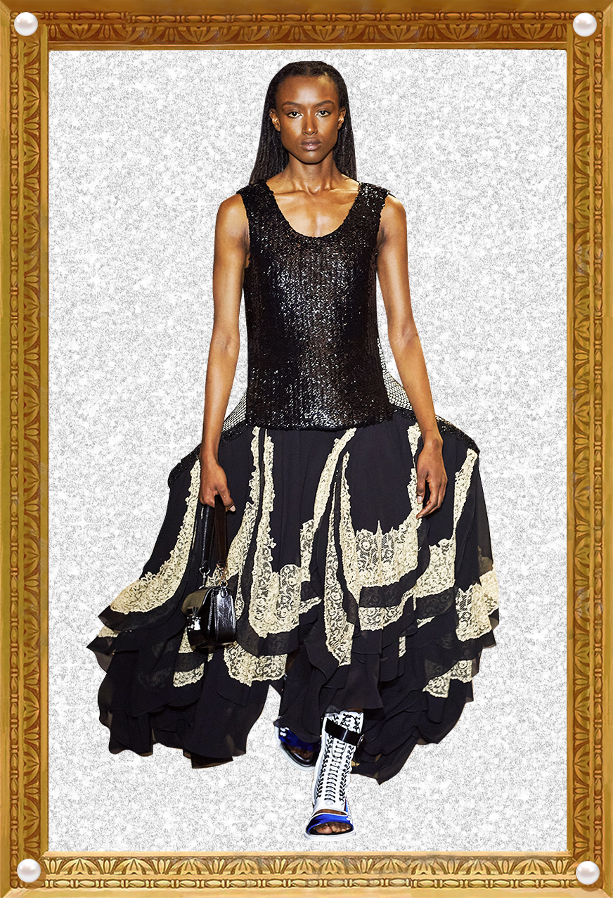 我感觉Nicolas本人特别看重这活。他直接用《迷离劫》中的吸血鬼形象作为LV的2022年春夏女装系列的灵感,所以看这个秀,多少能看到点剧里女主角的风格了哦?