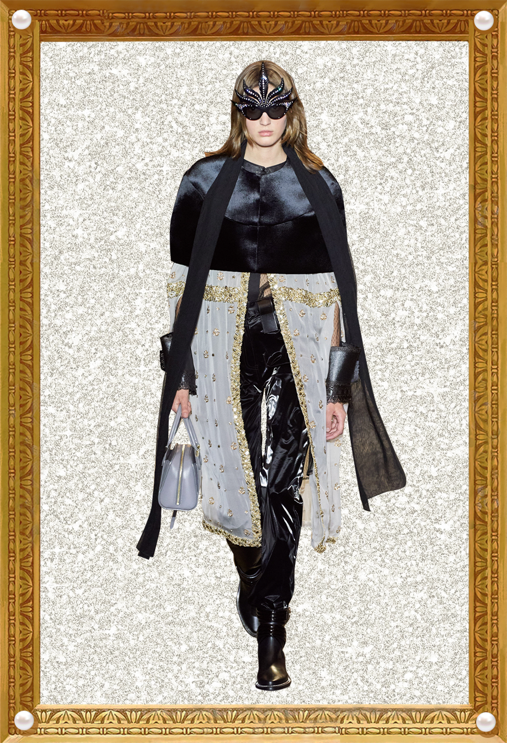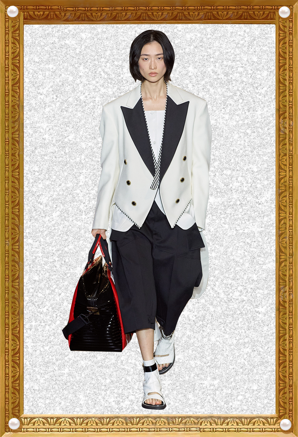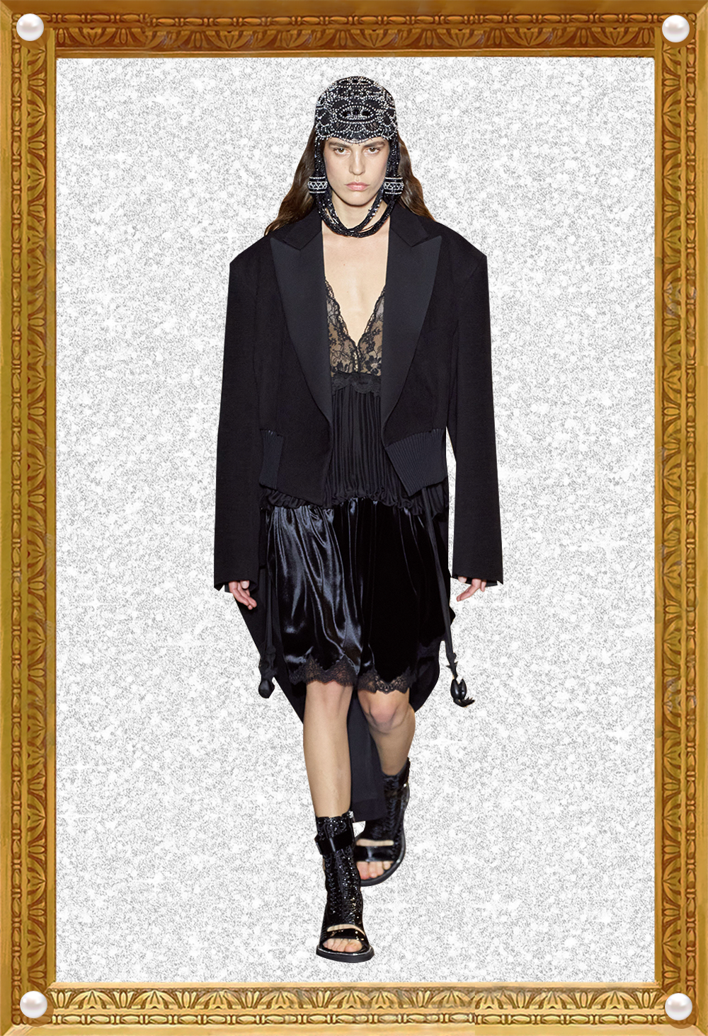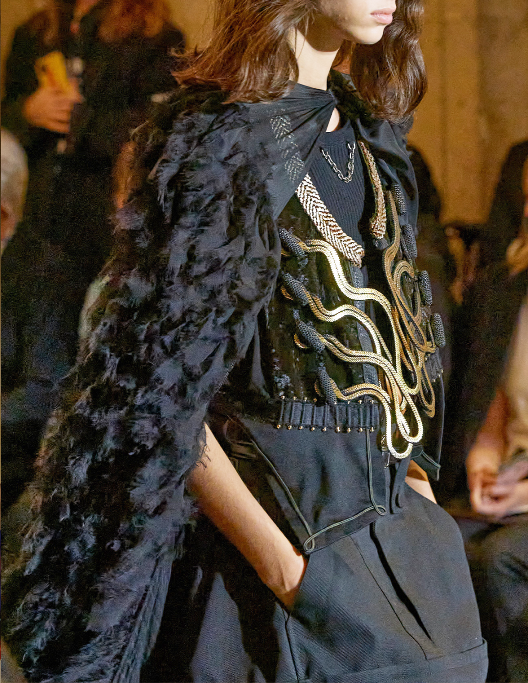 我感觉Nicolas本人特别看重这活。他直接用《迷离劫》中的吸血鬼形象作为LV的2022年春夏女装系列的灵感,所以看这个秀,多少能看到点剧里女主角的风格了哦?
