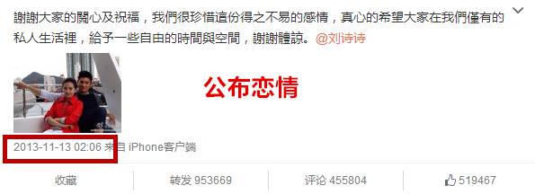 2013年的时候,两人公布了恋情!