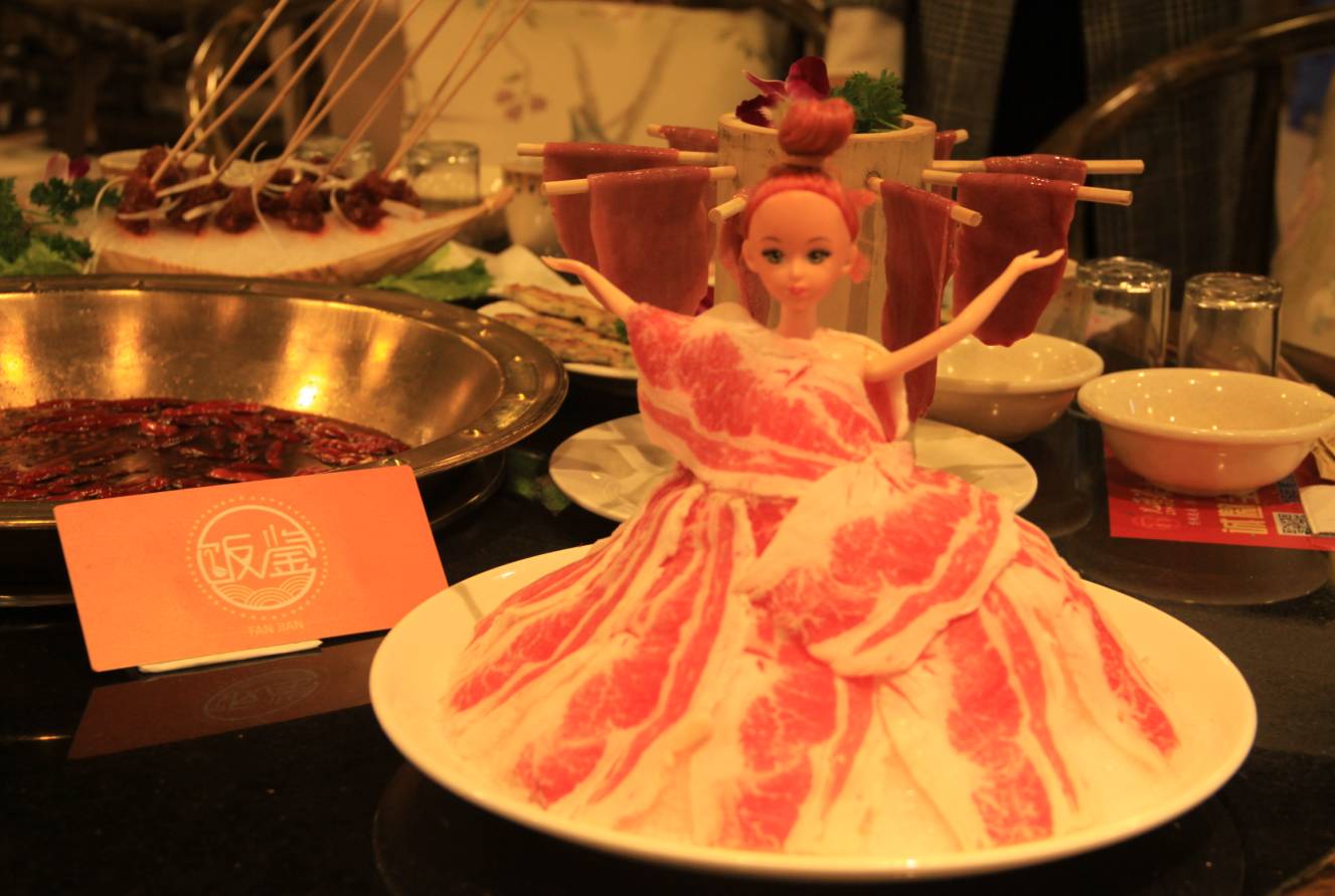 一身火红华丽牛肉衣,颜色粉嫩!小时候的玩偶芭比娃娃重新注入新的灵魂。吃的时候将牛肉衣一片一片取下,简直没办法正经吃个火锅啊!!肉涮红锅更佳!惊喜的发现,牛肉带一点甜甜的味道,吃起来口感香嫩,而且有一种谜之劲道,蘸上料,别有一番风味,没想到芭比牛肉视觉惊艳就算了,口味也令人如此神往,一瞬间都拜倒在芭比迷人裙摆之下!