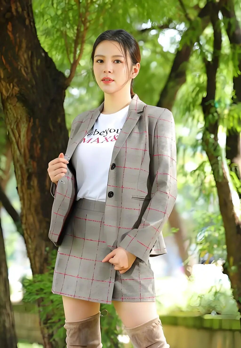刘品言的日常穿搭中,基础单品是她的“秘密武器”。无论是简约的T恤、牛仔裤,还是经典的小黑裙,她都能通过巧妙的搭配,打造出百变造型。例如,她曾以一件白色T恤搭配牛仔外套,再配上一条高腰半身裙,轻松营造出青春活力的气息。这种穿搭方式不仅适合日常出行,还能为造型增添层次感。