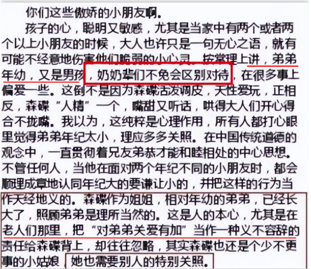 反观森碟,常常因为作为姐姐,被要求退让和照顾弟弟。