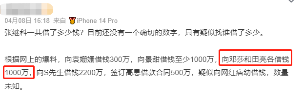 先是田亮牵扯进了“张继科欠钱事件”里,被扒出他就是借了张继科1000万的债主。