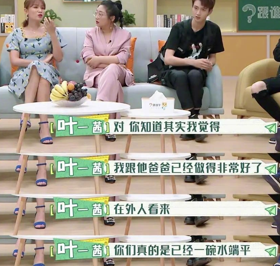在节目里,她说自己对儿子和女儿尽量做到一碗水端平,却遭到了森碟的不满。