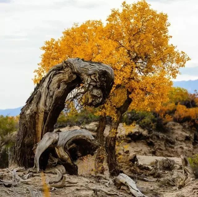 那些屹立在沙漠中的枯木,枯死后屹立不朽,造型千姿百怪,成了另一种令人赞叹,也让人唏嘘的美丽。