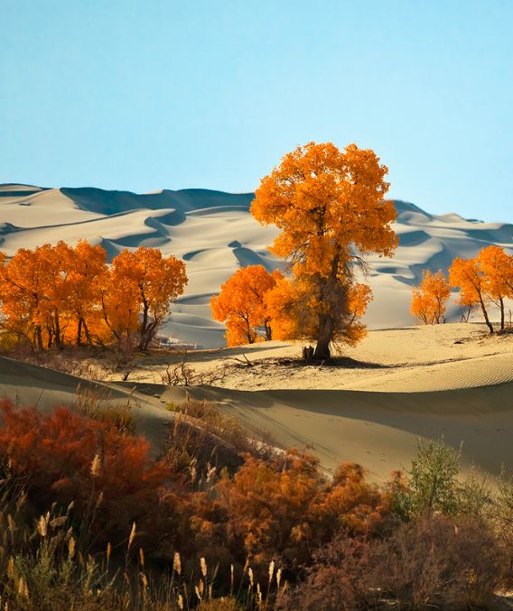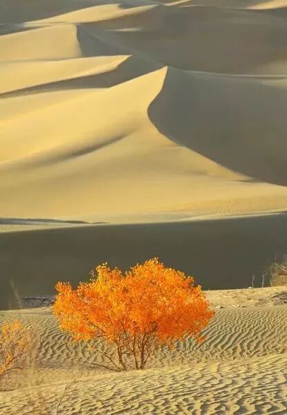 中国最大的沙漠,搭档世界最大的胡杨林,那种荒芜中的生命绚烂之美,任谁见了都会为之动容。