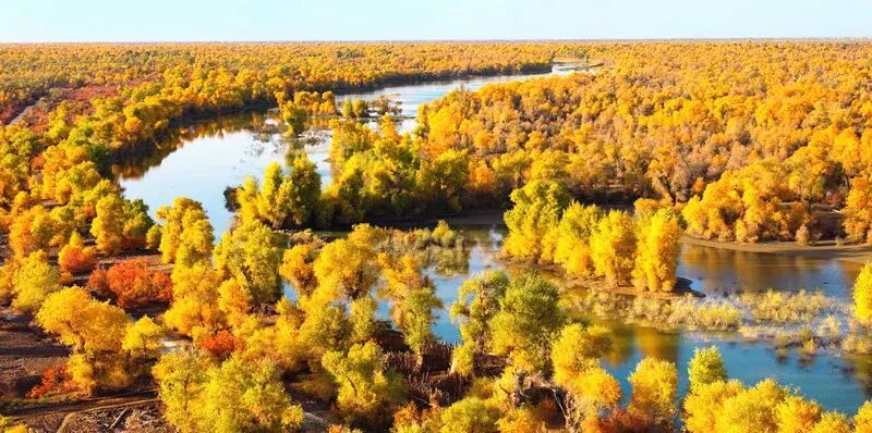 在这片广袤的大地上,分布着世界上规模最大、分布最密的胡杨林区,胡杨林面积达到300多万亩!