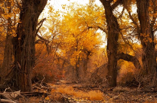 而在维吾尔语中,称胡杨为“托呼拉克”,意为“勇敢坚强”。它活着一千年不死,死后一千年不倒,倒后一千年不朽。
