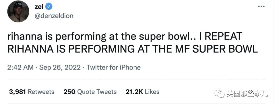 “蕾哈娜要在超级碗上表演....我再说一次,蕾哈娜要在超级碗上表演!!!”