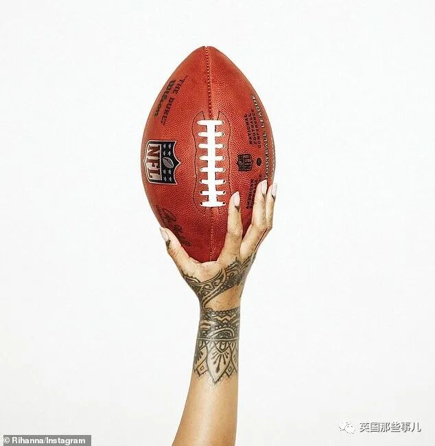 今日凌晨,Riri在社交媒体上分享了一张手举NFL橄榄球的照片,
