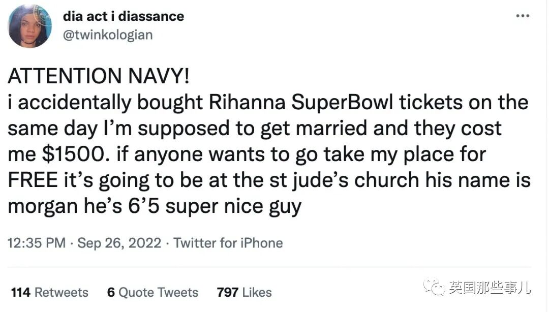 我不小心花1500美元买了蕾哈娜的超级碗门票,就在我结婚的同一天。