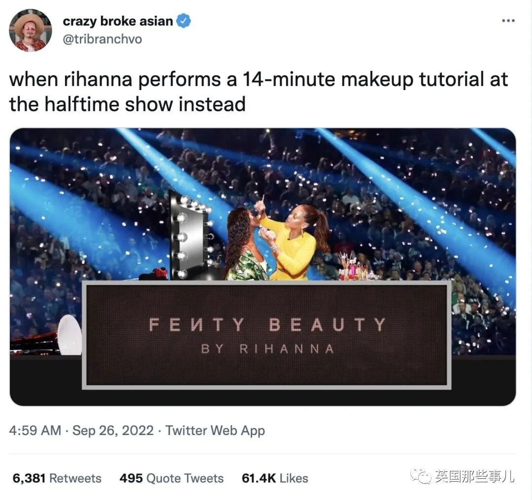 “蕾哈娜没有做中场秀表演,14分钟全都用来介绍化妆教程。”
