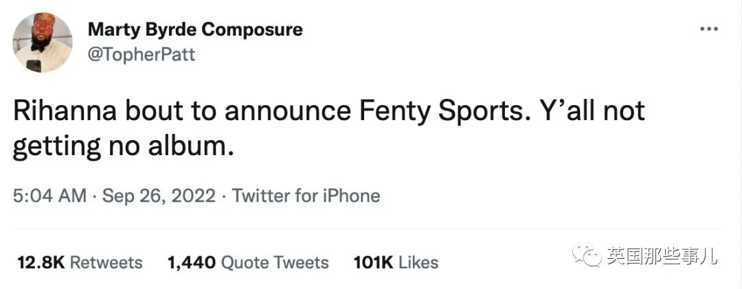 “蕾哈娜这是要推出Fenty运动系列,新专辑是等不到的。”