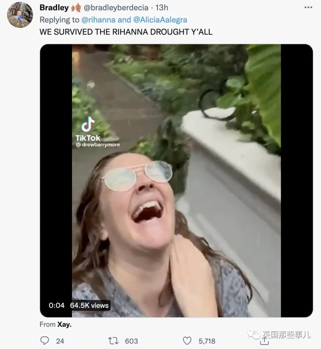 “宝宝(着火了)现在不行,歌手蕾哈娜回来了!”