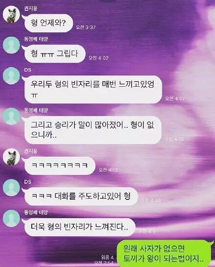 太阳 “还有胜利话多了.. 因为哥不在..”