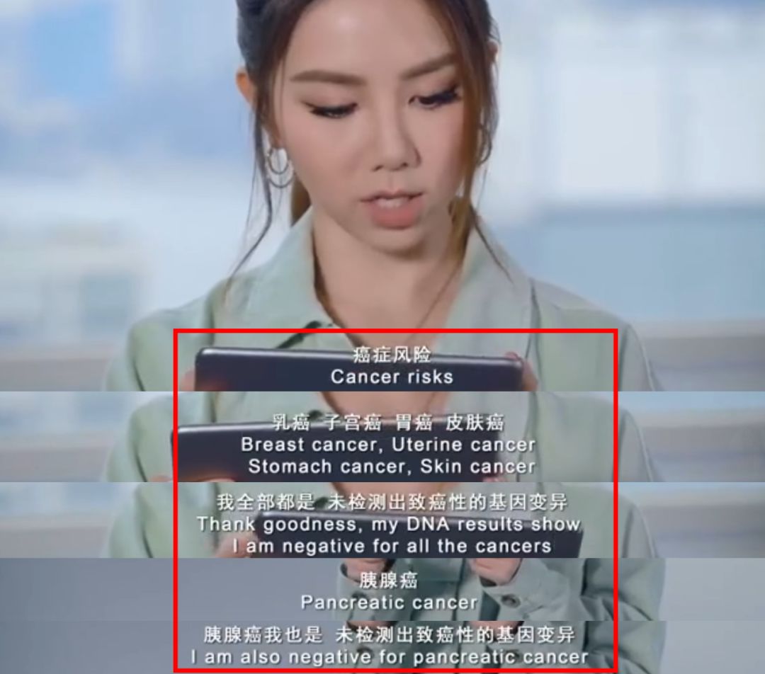 邓紫棋分别做了乳癌、子宫癌、胃癌、胰腺癌等36项癌症基因风险检测,检测结果全部都是未检测出致癌性的基因变异。看到这个结果时,邓紫棋明显松了一口气。