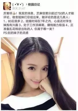 1、80后居多;2、结婚7年以内,心底还对学生妹抱有兴趣;3、处于工作巅峰期,赚钱能力极强;4、正准备花钱出轨的人,你属于那一类?配图是一张美女照。