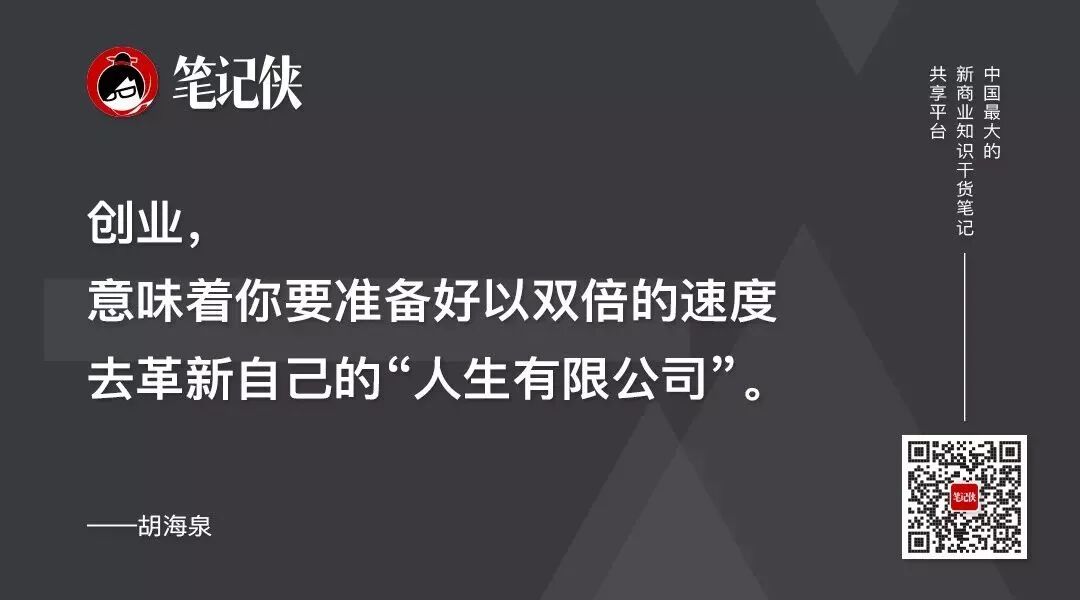 本文来源:公众号 @笔记侠。中国最大的新商业知识笔记共享平台,微信价值排行榜总榜前十,独家笔记支持湖畔大学、混沌大学、青腾大学、高山大学、中欧创业营、京东商学院、北大国发院等顶尖商学院课程,BAT、TMD、小米、华为、网易等知名企业,丁磊、傅盛、李善友等知名人士,60万企业决策及管理层都在看。