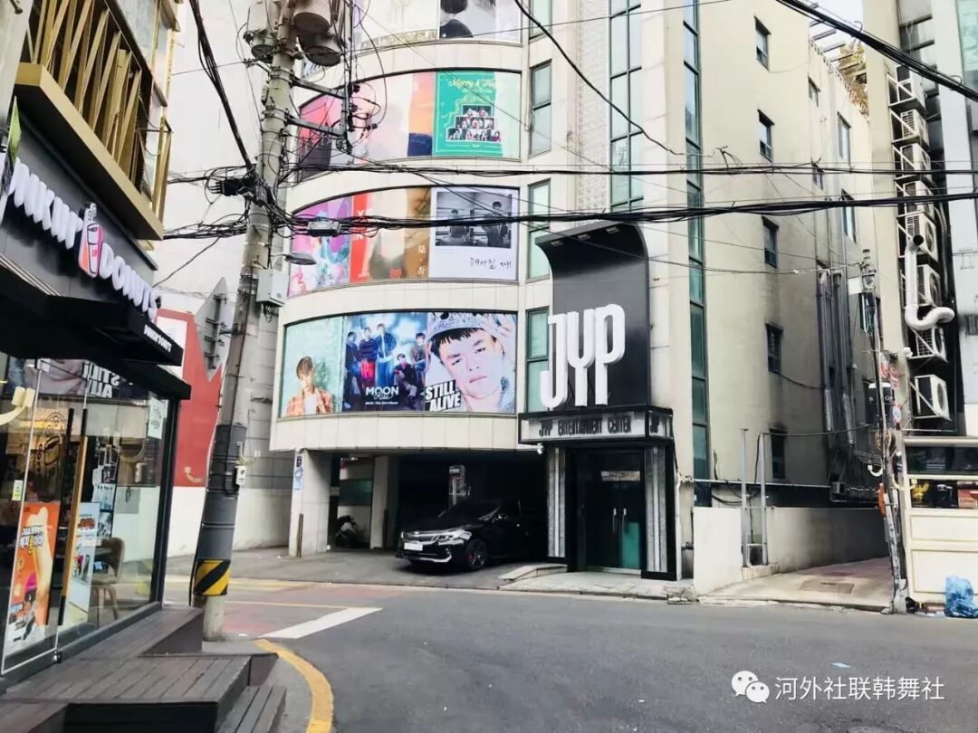 在走了“十万八千里”爬了无数次坡之后,小编终于抵达GOT7所在的公司JYP的楼下,当时小编还在跟队友视频,聊着聊着,队友说,就在这附近了,小编心想,我怎么没看到?便向四处张望了一下,这一扭头便看到离自己不远的地方赫然写着JYP三个大字母。然而小编由于爬坡过度,腿肚子早就没劲儿了。哪还记得自己之前立下的flag于是拍照,然后前往下一个地点。(其实小编还是有力气的,但小编怂啊!万一小编在楼下跳舞,恰逢GOT7出来买东西,岂不是很尴尬。到时候在把小编当私生小编不得冤死。)