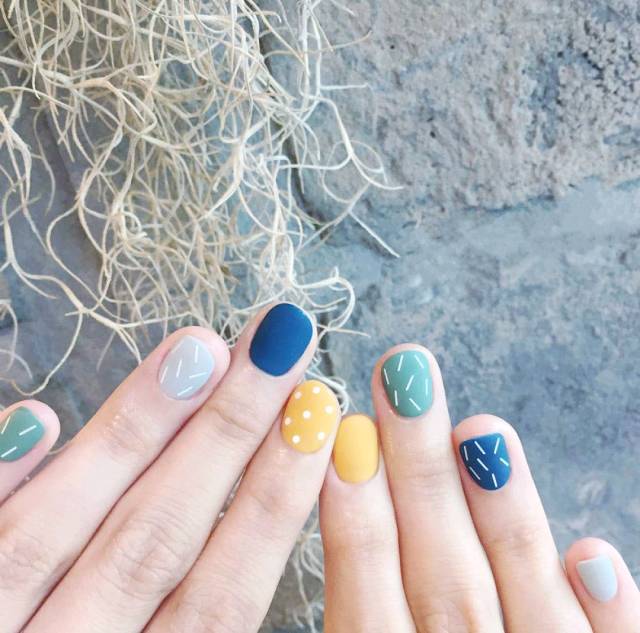 用冷色调的美甲,真的只适合手白的妹纸,如果你真的很爱,想美妞还是会给你推荐一些好看的~