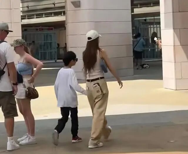 黄晓明前妻带娃现身国外游乐园,8岁小海绵穿长袖热到驼背,母子现状让人唏嘘