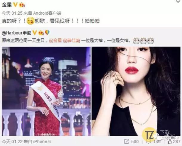 上个月,薛佳凝过生日的时候,因为和金星是同一天,所以金星也是耿直的把胡歌和薛佳凝圈在了一起。