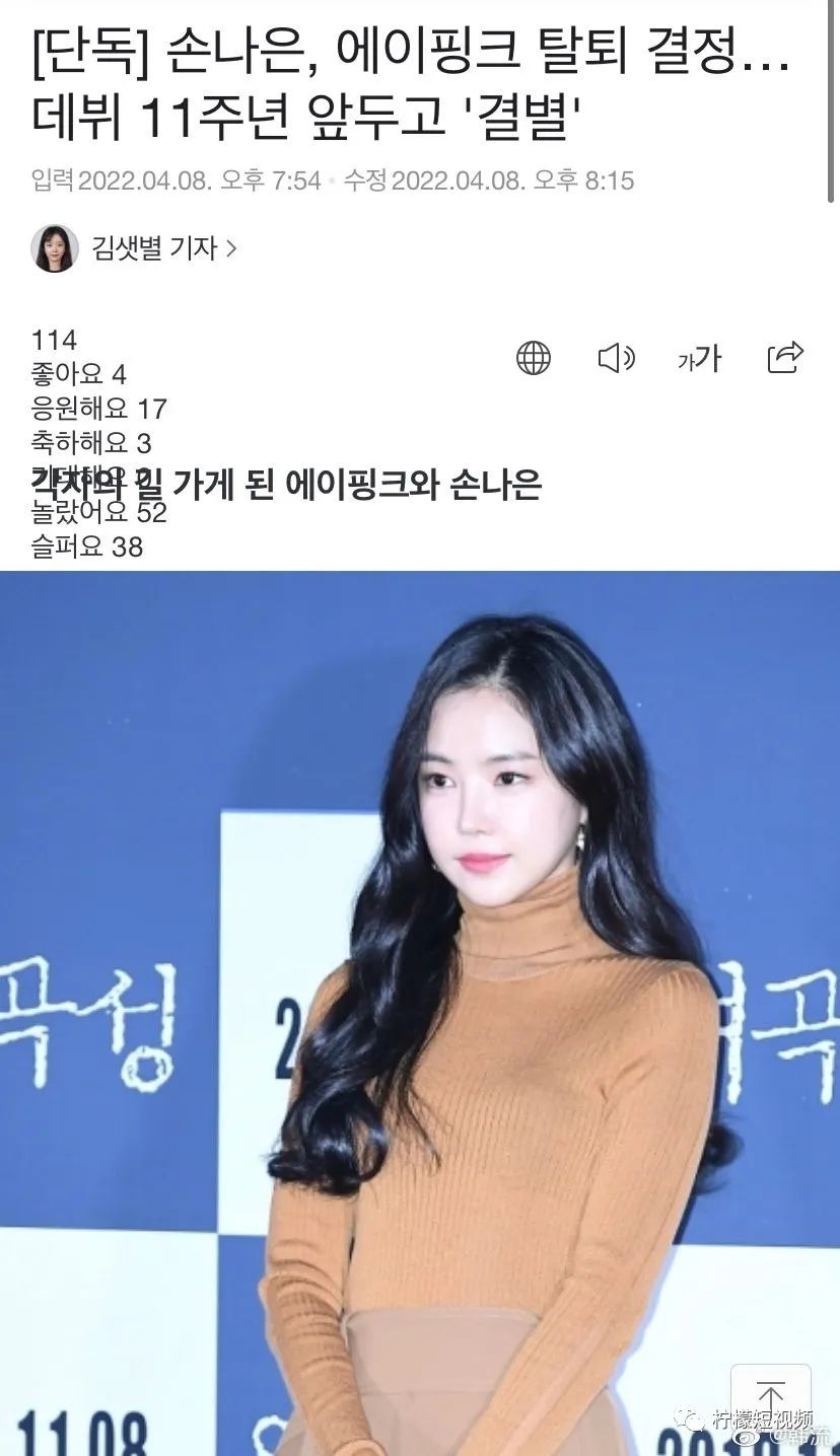 昨天下午,Apink所属社IST发表声明称孙娜恩将退队,从本月19日发行的饭颂开始,Apink将以五人形式开始活动。