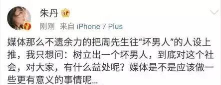 朱丹第一时间发文力保老公,而周一围好似将自己置身事外。