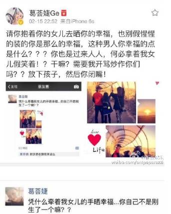 明星继母借孩子晒幸福,引发孩子生母不满,站出来开撕的,张雨绮不是第一个。还记得之前章子怡发了一张和汪峰前妻葛荟婕女儿小苹果的幸福合影。葛荟婕不干了,在微博和朋友圈不断表达自己的愤怒。