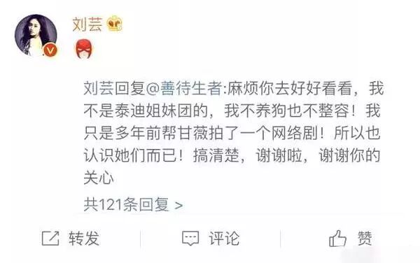 不仅如此,刘还在社交平台上公开否认自己是李小璐的泰迪姐妹团中的成员。